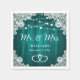 Décorez votre turquoise fête de mariage rustique avec ces serviettes en papier romantique M et Mme mariage, avec des coeurs entrelacés contre un arrière - plan en bois rustique orné d'élégantes dentelles florales et de lampes à cordes.