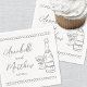 Serviettes de Mariage Whimsical faites à la main. Cette serviette de cocktail mariage personnalisée présente un design charmant et minimaliste, parfait pour ajouter une touche spéciale à votre célébration. Une illustration délicate d'une bouteille de champagne et d'un verre est présentée en gris, symbolisant l'occasion festive. Les noms de mariée et de mariée et la date du mariage sont élégamment présentés sous l'oeuvre d'art dans un mélange de script manuscrit et de police simple, créant un look élégant et accessible. Décoré dans une palette gris et blanc intemporelle qui rappelle l'esthétique italienne, française et européenne, ce design ajoute une touche d'élégance supplémentaire. Des touches de bordure décoratives en gris encadrent le design, ajoutant un détail subtil et sophistiqué à la serviette. Entièrement personnalisable, cette conception vous permet d'ajuster le texte et la disposition en fonction de votre thème mariage. Idéal pour les réceptions de mariage, il fonctionne également magnifiquement pour un dîner de répétition ou une douche nuptiale, ce qui en fait un ajout polyvalent et élégant à vos événements spéciaux.