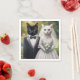 Deux chats sont habillés en tenue de mariage, l'un en smoking et l'autre en robe de mariée tenant un bouquet