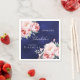 Serviette En Papier Marine bleu rose roses floraux élégant anniversair