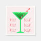 Ces serviettes mignonnes pour votre fête de vacances ont un martini vert avec une garniture de sucre de canne rouge et blanc. Le texte sur les côtés dit "Merry Merry Merry et Bright Bright."