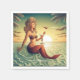 Sirène classique assise au bord de la mer avec un cocktail de martini au coucher du soleil pour customiser, personnalisez en changeant de nom