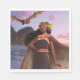 Cette image captivante présente Matangi, un nouveau personnage dans le monde enchanteur de Moana. Habillée d'une robe à la belle finesse, marron et dorée, avec un cap qui imite les ailes de son compagnon, Peka la chauve-souris, Matangi exsude une présence majestueuse. Son habit, orné de motifs insulaires traditionnels et d'accessoires vibrants, souligne sa connexion aux royaumes naturels et spirituels. Peka, jouant au-dessus d'elle, ajoute un élément de fantaisie et de mystère à son caractère. Ce graphique résume parfaitement l'élégance de Matangi et le lien mystique qu'elle partage avec Peka.