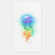 Grande méduse irisée, artistiquement dessinée, brillante, avec de longues tentacules sur le blanc, peinte sur l'arrière - plan multicolore. Méduse arc-en-ciel.