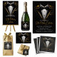 Serviettes en papier noir et or pour fêtes d'anniversaire avec tuxedo noir et or, cravate arc et carré de poche. Ces serviettes noires et dorées de fête d'anniversaire sont facilement personnalisées pour votre événement en changeant le texte selon les besoins. Ces serviettes en papier tuxedo sont parfaites pour les événements d'entreprise, les retraites, les fêtes de célibataire et tout événement officiel de cravate noire. Ajoutez votre texte, logo, images, etc., pour personnaliser.