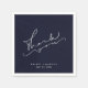 serviettes de mariage de Merci ou de fiançailles bleu marine, personnaliser avec nom de couple et date de mariage.