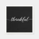 Ajoutez cette touche de sophistication moderne à vos serviettes. Le mot "Thankful" dans une police de style manuscrite de script simple avec de longues queues. Un look tendance et chic. Essayez-le pour des fêtes spéciales comme Thanksgiving et Noël.