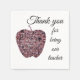 Ajoutez une touche personnelle à la fête de fin d'année avec ces serviettes. Les serviettes sont ornées d'une belle pomme de mosaïque rouge qui marie les mots "Merci d'être notre professeur". La pomme rouge a été conçue de façon à donner à la pomme une apparence de mosaïque ou de vitrail avec des carreaux de rouge, gris et noir. La fin de l'année ou la semaine d'appréciation des enseignants est le moment idéal pour dire merci à l'enseignant de votre enfant pour tout le travail acharné qu'il a accompli.