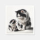 Un chaton noir et blanc moelleux et sa mère s'assoient ensemble sur un arrière - plan neutre.