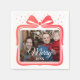 Merry Christmas Elegant Bow Present Photo Collage Napkins | Gold Luxe Personalized Picture Party Napkins