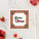 Beautiful Christmas paper napkins featuring a vintage-style "Merry Christmas" and a Christmas red plaid border with holly accents. Great for holiday table settings or holiday parties.