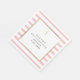 Serviette en papier pour la Première Sainte Communion à rayures roses élégantes avec une croix dorée et une bordure de faux foil doré qui encadre votre message d'événement de célébration spéciale dans une typographie moderne. Conçu par Thisisnotme©