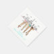 Bring Miami beach vibes to your bachelorette party with this chic cocktail napkin featuring a modern Miami skyline and four stylish ladies in cute bathing suits from the waist down. One holds a straw hat with “Bride to Be” for the perfect spotlight moment.