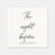 Obtenez-vous quelques serviettes élégantes et magnifiques décorées pour votre dîner de répétition. Les serviettes sont fournies dans un style calligraphie moderne avec ~THE NIGHT BEFORE~ police. Vous pouvez aussi customiser le nom de la mariée et du marié. Les serviettes sont dotées d'une parties scintillant avec Eucalyptus et confettis pour les rendre si belles et élégantes.