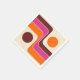 A dynamic abstract composition featuring two bold circles—one orange, one dark brown—linked by three flowing bands in orange, pink, and brown. Each stripe is bordered by crisp lines, curving gracefully across a soft beige background. The interplay of shape and color evokes 1970s graphic design, balancing visual rhythm with sculptural simplicity. The result is a harmonious, retro-inspired piece that captures motion, contrast, and editorial clarity.
