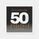 Célébrez le big five oh avec ce design moderne, qui comprend un bloc noir, blanc et orange frappant et des lettres écrites à la main sur un riche arrière - plan noir à gris fumé. Design © W.H. Sim. Voir plus sur zazzle.com/expressionsoccasions