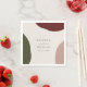 Avec un style artistique simple, cette serviette en papier a une riche palette de couleurs automnales avec des formes abstraites de rouge de vin bordeaux, de terre cuite et de vert chasseur le long des bords du design. Un arrière - plan écru se marie bien avec les couleurs de l'automne. Les appareillages de type élégant sont utilisés pour les noms de la mariée et du marié et la date du mariage. Personnalisez le modèle de texte avec votre texte.