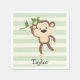 Cool, colorl kid's brown monkey swinging from green vine, vierle safari, zoo animal theme design on pastel green and white stripes pattern. Parfait poison pour bébé, toddler, gamds, children, teens, or adults ! personnalized the design by adding a child's name or custom text. Visit our store, Birthday Party House, for more great customizable boy and girl products !