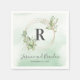 Serviette En Papier Monogramme Aquarelle Verdure Mariage Or