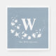 Serviette En Papier Monogramme classique Nom Floral Wreath in Dusty Bl
