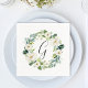 Serviette en papier Monogramme Couronne Florale Blanche avec une couronne de feuillage vert aquarelle avec des fleurs blanches. Pour une personnalisation plus avancée de ce design, veuillez cliquer sur le bouton "Personnaliser". Des articles assortis sont également disponibles.