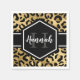 Serviettes empreintes de léopard chic en or et noir avec un nom personnalisé et modèle monogramme. Un motif poster de animal de safari mignon et branché, arrière - plan surmonté d'un petit morceau de personnalisation.