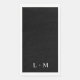 Serviette noire. Monogramme blanc. Contemporain. Guest Napkin. Disposition horizontale.