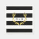 Boitiers rustiques monogramme or faux feuille sur un arrière - plan moderne à rayures noir et blanc. Ajoutez facilement vos initiales monographiques personnalisées.