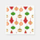 Serviettes en papier dans un motif d'ornements anciens de Noël assortis, en rouge profond, vert foncé, or doux et rose, contre un arrière - plan blanc