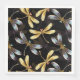 Motif sans couture avec or, bijoux, libellules brillantes avec ailes détaillées et pétillantes sur arrière - plan noir. libellule d'or.