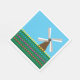 Un moulin à vent au milieu de fleurs de tulipe jaune bleu et rose. Ce design semble vraiment efficace sur ces serviettes en papier