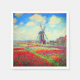 Des serviettes ornées de fleurs et de peinture de moulin de Claude Monet. De beaux champs colorés de tulipes rouges, roses et jaunes à côté d'un moulin et d'une maison en Hollande. Un grand cadeau Monet pour les amateurs d'impressionnisme et d'art français.