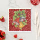 Plaques de Noël avec de grandes cloches de Noël brillantes en rouge, bleu et or sur houx et baies sur un arrière - plan de rouge avec des flocons de neige blancs.