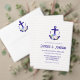 Nautical anchor and monogram framed by a lightened version of patriotic florals: white rose, blush pink peony and light blue. Preppy pink and white stripes for a summer, beach, or destination wedding event.