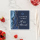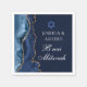 L'élégante agate bleu marine et or orne cette serviette en papier du parti B'nai Mitzvah pour une famille juive célébrant l'appel de leur enfant à la Torah. Les deux noms sont écrits dans une belle écriture formelle sous l'Étoile de David pour une célébration conjointe.