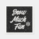 Texte "Snow Many Fun" avec des flocons de neige blancs sur le noir. La couleur Arrière - plan peut être modifiée.