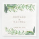 Nuances de vert aquarelle pour de simples pulvérisations feuillues. Le feuillage est masqué par un surlignage blanc et les noms et la date sont personnalisables. La couleur de la police est marron granitique.