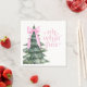 Serviettes de fête de Noël avec arbre de Noël et arc rose. Oh quel plaisir !