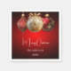 Arrière - plan rouge, texte blanc. Décoré de 3 boules rouges et faux or et étoiles dorées. Texte : Joyeux Noël. Personnalisez et ajoutez votre nom de famille et votre année.