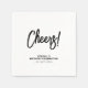Ajoutez des détails élégants à votre journée spéciale avec cette serviette de soirée personnalisée. Ce design présente un script de calligraphie "Cheers!" en noir avec du texte personnalisé. Vous pouvez personnaliser le texte pour n'importe quel événement ou fête. Des invitations et des fournitures de fête correspondants sont disponibles dans ma boutique BaraBomDesign.