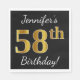 Serviette En Papier Noir, Faux Gold 58e anniversaire + Nom personnalis