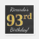 Serviette En Papier Noir, Faux Gold 93ème anniversaire + Nom personnal