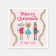 Une serviette de Noël mignonne et amusante, avec une illustration dessinée à la main du chat, du chien et de la souris comme personnages de ballet de casse-noix. L'arrière - plan est rose.