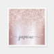 Serviette en papier personnalisée avec monogramme, nom ou signature en écriture cursive métallisée rose gold pailletée Girly Glam. Ce design présente votre prénom dans un joli style de lettrage manuscrit avec des fioritures (ou calligraphie) sur une fausse feuille métallique rose gold pailletée avec une bordure glamour scintillante. Celles-ci sont faciles à personnaliser. Idéal pour un anniversaire, un mariage, une fête d'anniversaire pour les 16 ans, une douche de mariée, une soirée de bachelorette, une baby shower, une fête de remise de diplôme et c'est pour la fille qui aime les choses uniques et élégantes avec une touche de paillettes.
