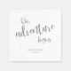 Ces simples serviettes de cocktail de typographie comprennent l'expression "Notre aventure commence" et votre texte personnalisé en bleu turquoise foncé sur un arrière - plan blanc - coordonnées avec mon "Lac dans les montagnes notre aventure commence" invitations de mariage et coordonnées - par katz_d_zynes | Recherche de mots-clés turquoise+aventure sous l'onglet "Produits" dans mon magasin pour voir la coordination papeterie et biens de fête