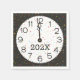 Une horloge avec minuit sur un arrière - plan blanc avec une bordure noire et des confettis colorés en chute est parfaite pour une fête du Nouvel An. L'année peut être modifiée ou supprimée.