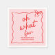 Oh Quel Amusant ! Serviettes de fête de Noël dessinées à la main en blanc rose et rouge.