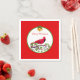 Oiseau cardinal rouge de Noël à la branche d'arbre sur serviettes en papier rouge et blanc.