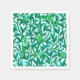 Serviettes en papier dans une tapisserie de William Morris Art Nouveau motif d'oiseaux exotiques dans un grenadier, avec des feuilles turquoise et turquoise, des branches vert jade, des oiseaux et des fruits dans des aqua vert jade, et un arrière - plan d'aqua pâle