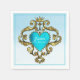 Serviette En Papier Ornement Coeur Bleu Et Or